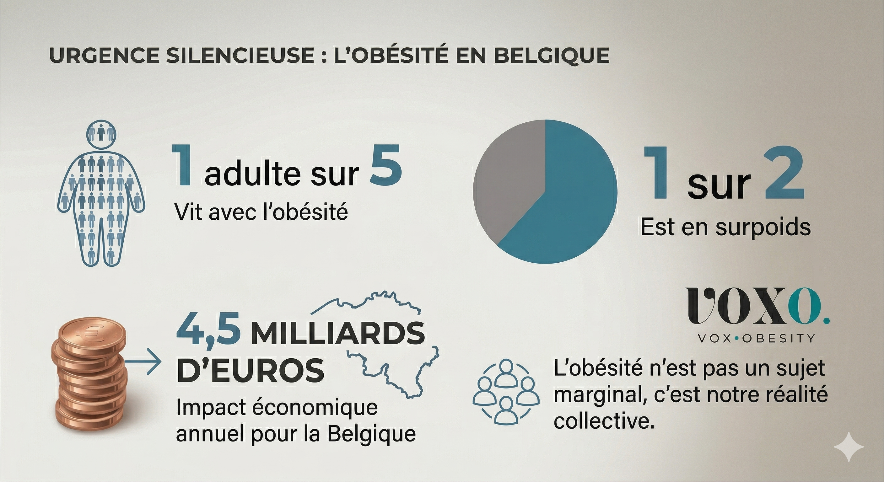 - Impact Économique : L’obésité réduit le PIB de la Belgique de 2,7 % à 3 % chaque année, en raison des dépenses de santé et de la baisse de productivité (absentéisme, invalidité).
